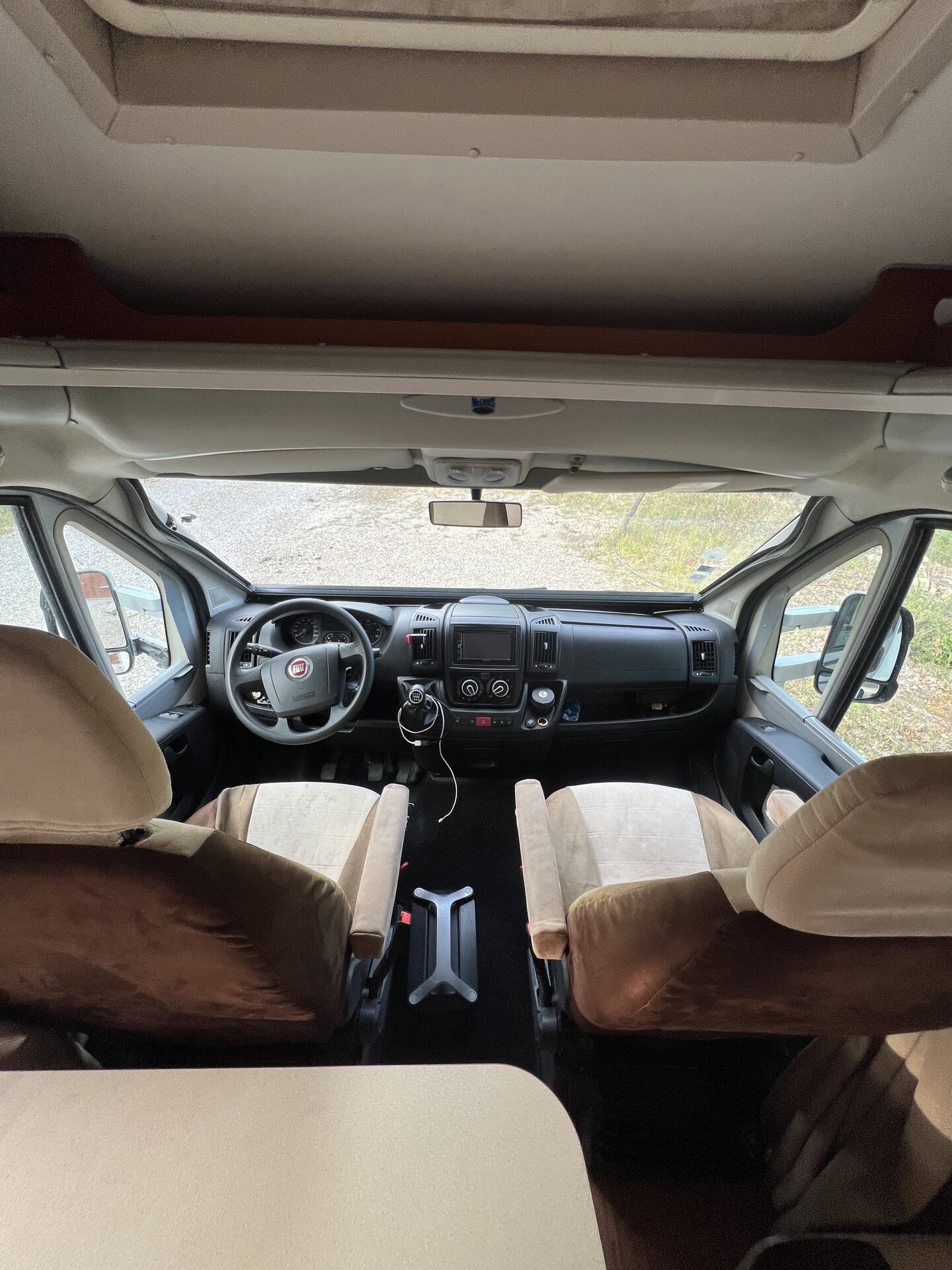 Équipements complets : panneaux solaires, convertisseur 12V/230V, prises 230V, chauffage gaz, store latéral, moustiquaires, sièges pivotants, climatisation cabine, régulateur de vitesse, rétroviseurs électriques et fermeture centralisée.